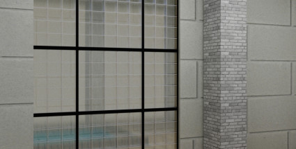 По вашему желанию металл окрашивается в цвет стеклоблоков.