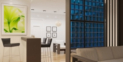 Наши готовые работы вы можете встретить в квартирах и частных домах. Красивые надежные стеклоблоки отлично вписываются в интерьеры ванных комнат и гостиниц, используются как межкомнатные перегородки.